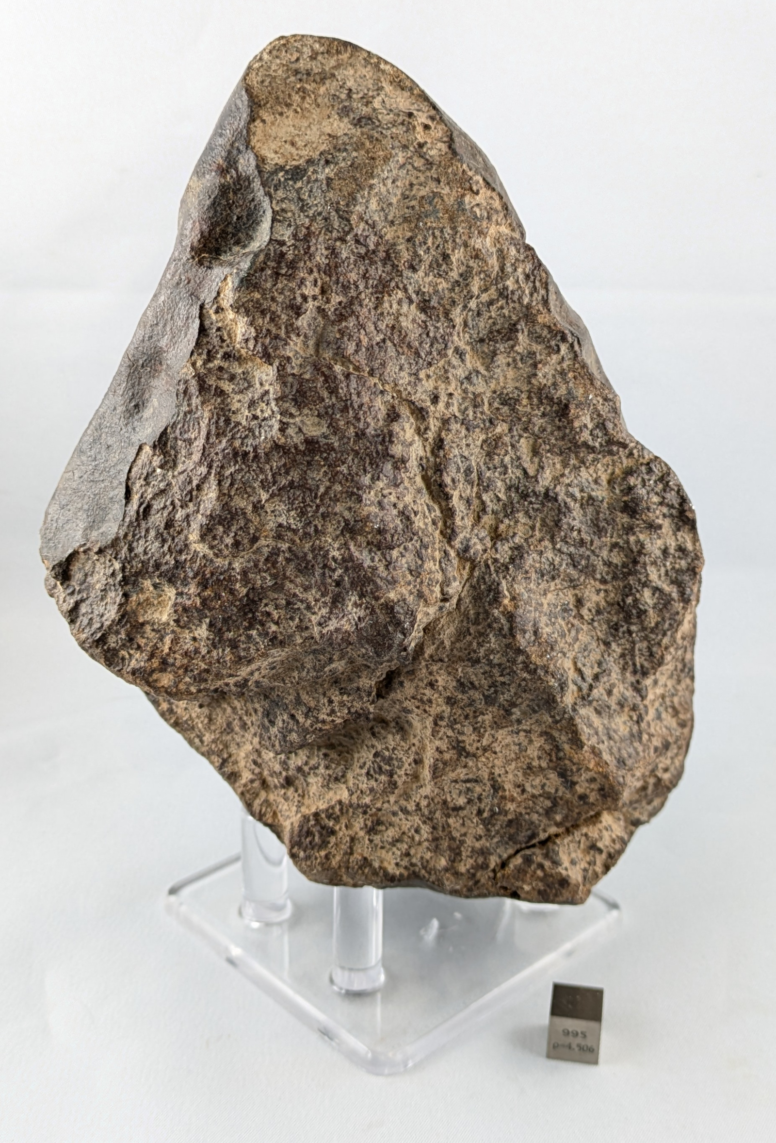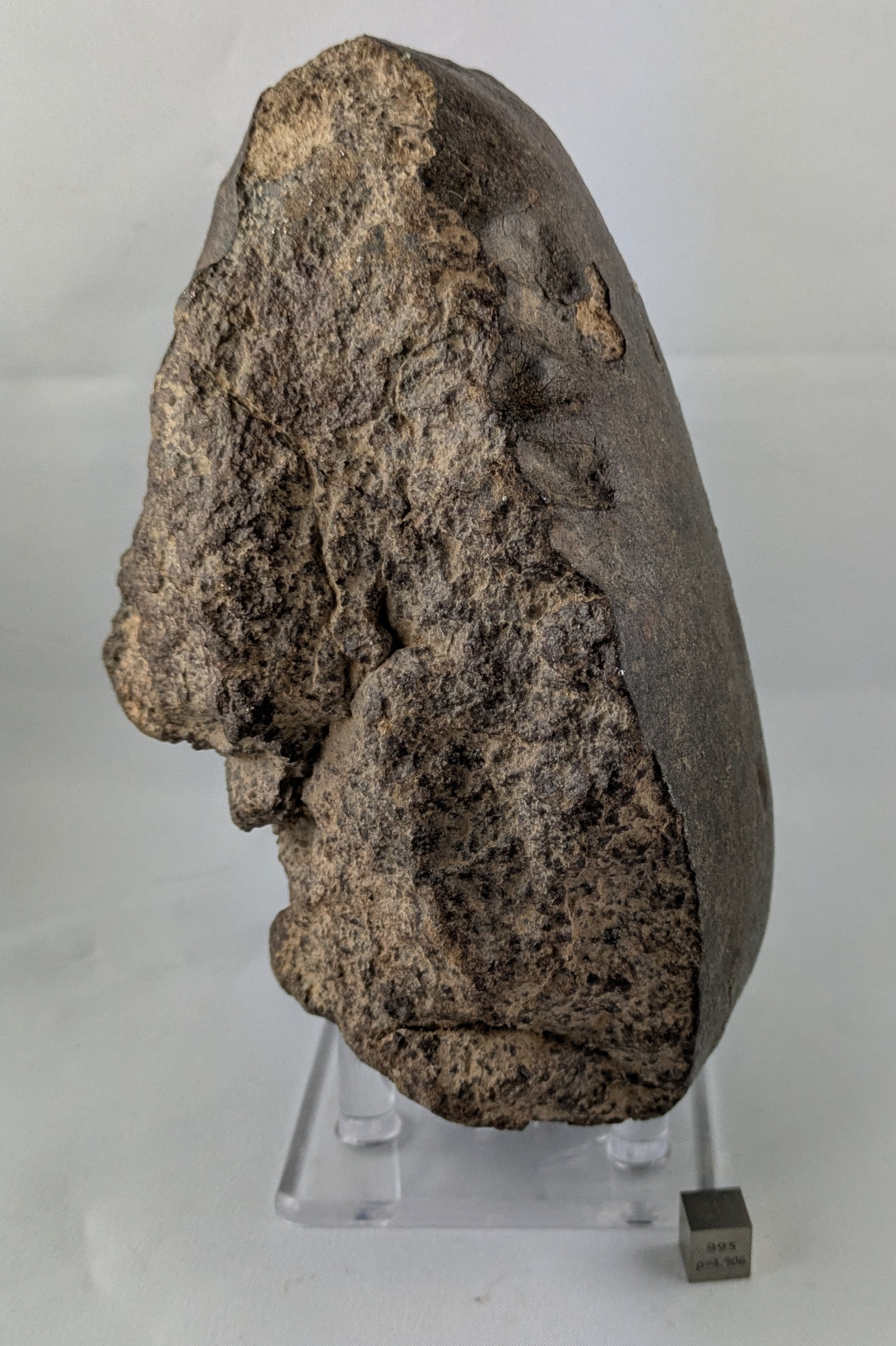 This is a very interesting oriented meteorite, exhibiting different features. Parts of the meteorite are covered with numerous small regmaglypts, each about 1 cm in diameter. The meteorite seems to have changed its symmetry after a mostly oriented flight. It has regmaglypts on one side and a smooth, rounded surface on the other side. The meteorite has not been classified yet and can still be analysed at a later point in time. The specimen comes with a Sun.org certificate of authenticity. Shipping is from Germany, postage is 6 euros within Germany, 14.49 euros within the EU and 61.99 Euro worldwide. If you make more than one purchase, the postage costs will only be charged once.