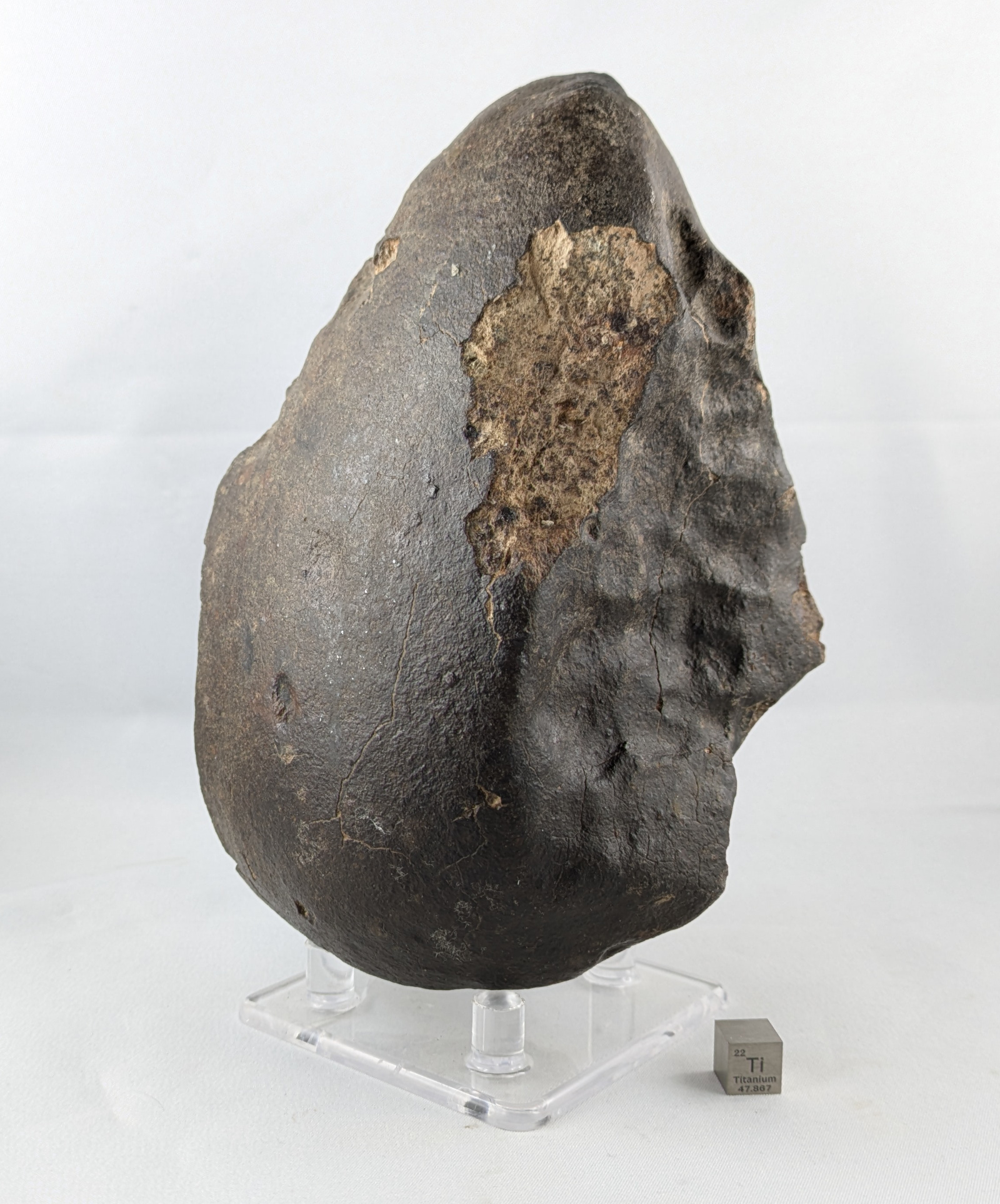 This is a very interesting oriented meteorite, exhibiting different features. Parts of the meteorite are covered with numerous small regmaglypts, each about 1 cm in diameter. The meteorite seems to have changed its symmetry after a mostly oriented flight. It has regmaglypts on one side and a smooth, rounded surface on the other side. The meteorite has not been classified yet and can still be analysed at a later point in time. The specimen comes with a Sun.org certificate of authenticity. Shipping is from Germany, postage is 6 euros within Germany, 14.49 euros within the EU and 61.99 Euro worldwide. If you make more than one purchase, the postage costs will only be charged once.